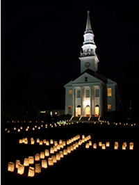 Cheshire’s Lights of Hope raises funds through sales of luminary kits. The luminaries are simultaneously lit throughout the town by schools, churches, local businesses and by residents. The proceeds raised are then donated in the spirit of “Neighbors Helping Neighbors,” which is the mission of the organization.